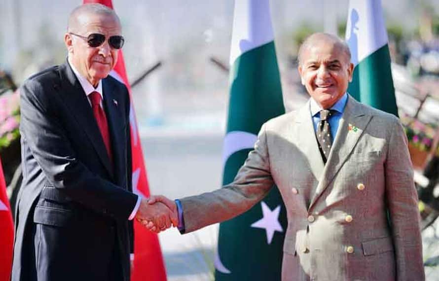 انہوں نے اس بات کا اظہار کیا کہ دونوں ممالک کے تعلقات ہمیشہ مضبوط اور مثالی رہے ہیں۔ وزیراعظم شہباز شریف نے مزید کہا کہ ترک صدر رجب طیب اردوان نے پاکستان کے بردبار اور پُرامن رویے کو سراہا ہے اور مسئلہ کشمیر، آبی تنازعات اور دیگر خطے کے اہم امور کے پرامن حل کی امید کا اظہار کیا ہے۔
