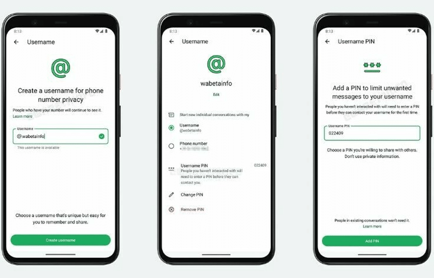 واٹس ایپ نے صارفین کی رازداری کو مزید بہتر بنانے کے لیے ایک نیا اور اہم فیچر متعارف کرانے کی تیاری کرلی ہے، جس کے تحت صارفین اپنی مرضی کا منفرد یوزر نیم بناسکیں گے۔