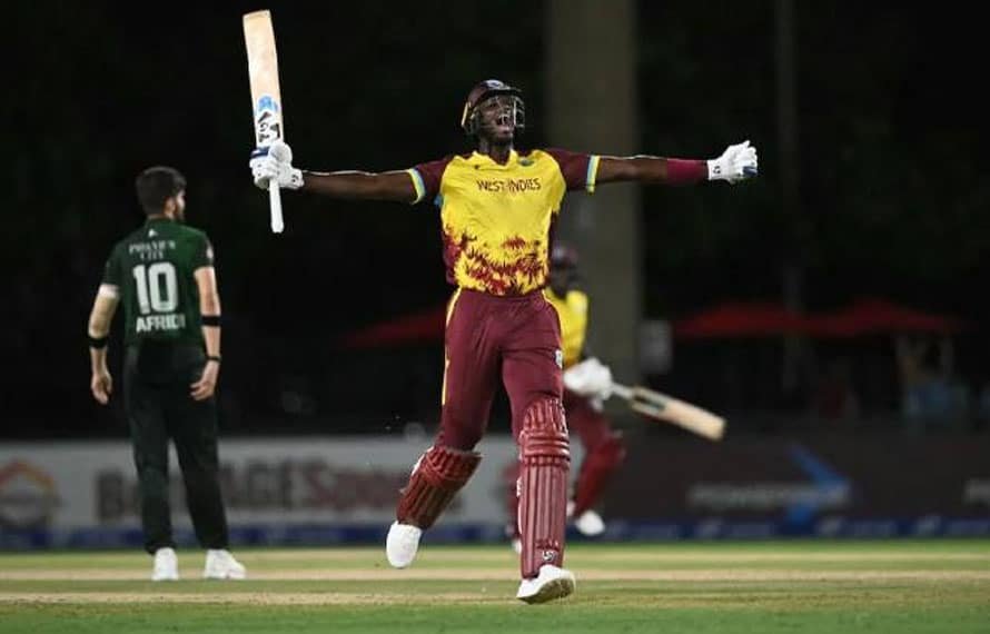 روسٹن چیز نے 49 رنز کی ناقابل شکست اننگز کھیلی جب کہ جسٹن گریوز نے 26 رنز بنائے،رتھرفورڈ 45، شائے ہوپ 32 اور کارٹے 16 رنز کے ساتھ نمایاں رہے۔