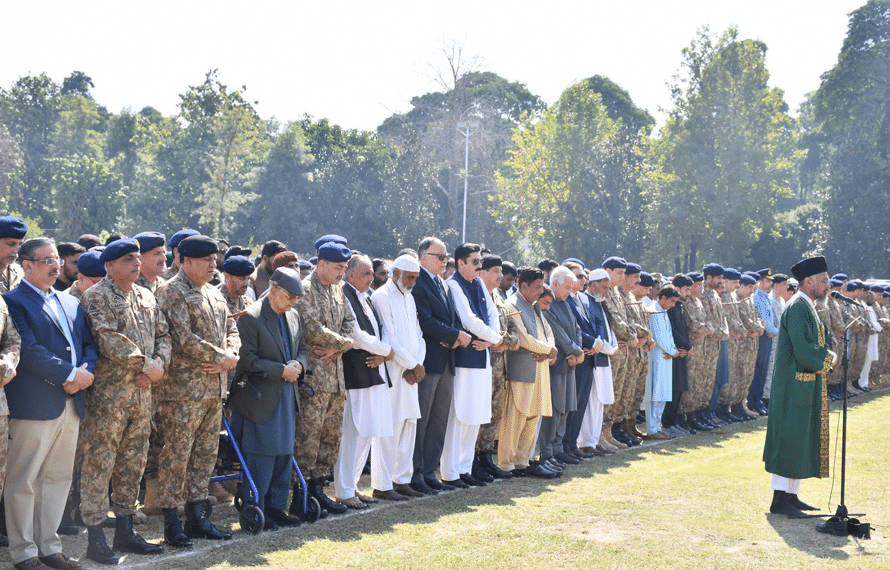 نمازِ جنازہ میںفیلڈ مارشل سید عاصم منیر، وفاقی وزراء، گورنر خیبرپختونخوا، اعلیٰ سول و عسکری حکام اور عوام کی بڑی تعداد نے شرکت کی۔