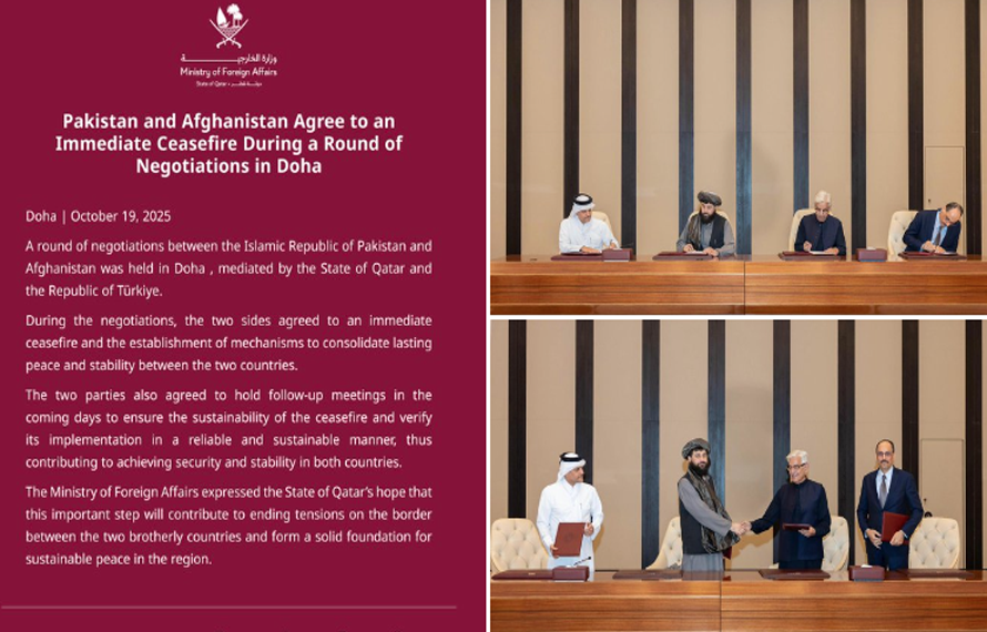 پاکستان اور افغانستان نے قطر اور ترکی کی ثالثی میں دوحہ میں ہونے والے مذاکرات کے دوران فوری جنگ بندی پر اتفاق کر لیا ہے۔
