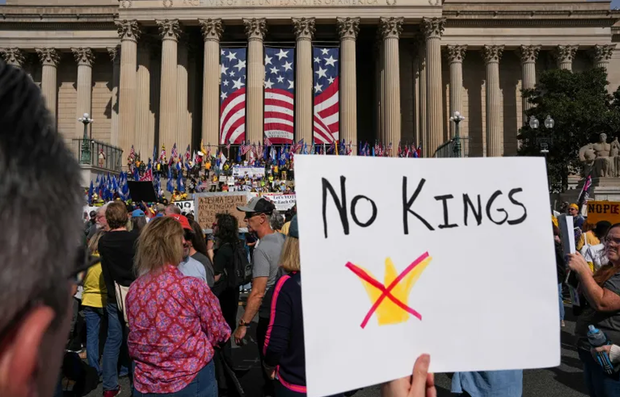 امریکا میں صدر ڈونلڈ ٹرمپ کی مبینہ آمرانہ پالیسیوں کے خلاف بڑے پیمانے پر ’’نو کنگز‘‘ کے عنوان سے احتجاجی مظاہرے کیے گئے۔