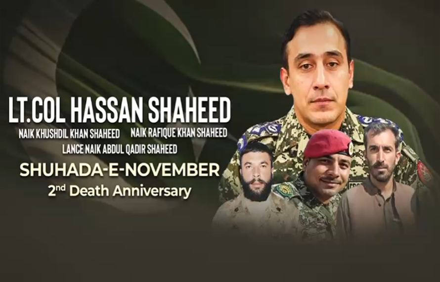 وطنِ عزیز کی سلامتی کے لیے اپنی جان کی قربانیاں دینے والے لیفٹیننٹ کرنل محمد حسن حیدر شہید اور دیگر تین شہداء کی دوسری برسی پوری قوم کی جانب سے عقیدت و احترام کے ساتھ منائی گئی۔