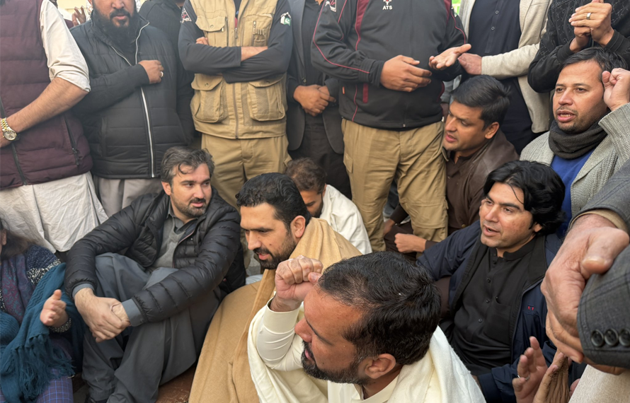 ملاقات سے مسلسل انکار پر وزیراعلیٰ آفریدی نے جیل کے باہر دھرنا دیا جہاں پی ٹی آئی کے کارکن بھی ان کے ہمراہ موجود رہے۔