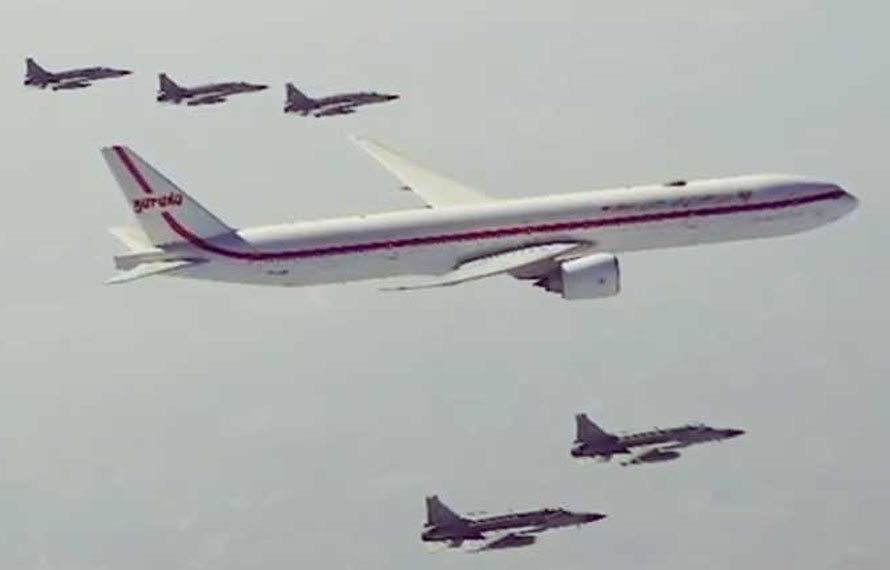 پاکستان کی فضائی حدود میں داخل ہوتے ہی پاک فضائیہ کے چھ جے ایف-17 جنگی طیاروں نے انڈونیشین صدر کے طیارے کو حصار میں لے کر پروفیشنل فارمیشن میں ایئر اسکارٹ فراہم کی، جس کی ویڈیو سوشل میڈیا پر تیزی سے وائرل ہو گئی ہے۔