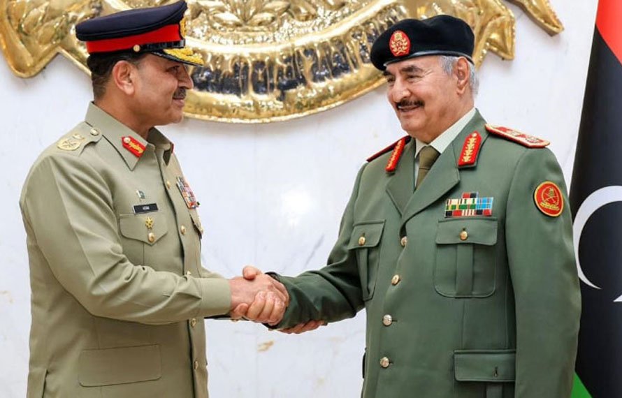 لیبی کمانڈر خلیفہ حفتر نے پاک فوج کی پیشہ ورانہ مہارت اور تجربے کو سراہا اور پاکستان کے ساتھ دفاعی تعلقات کو وسعت دینے کی خواہش کا اظہار کیا۔