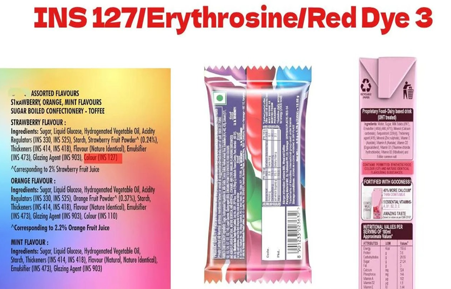 بھارتی اسٹرابیری ملک شیکس، کینڈی اور چیونگم میں کینسر سے تعلق رکھنے والا رنگ افزودہ کیمیکل پایا گیا ہے جس کے بعد یو ایس ایف ڈی اے نے کینسر کا باعث بننے والی 127 بھارتی مصنوعات پر پابندی عائد کر دی ہے۔