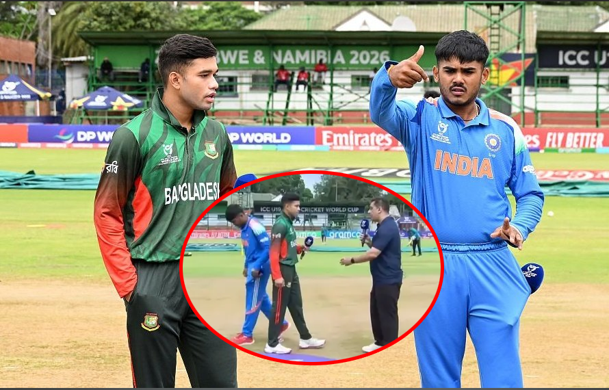بھارت اور بنگلہ دیش کے درمیان کھیلے گئے میچ کے دوران ٹاس کے وقت بھارتی کپتان آیوش مہاترے اور بنگلہ دیشی نائب کپتان زواد ابرار کے درمیان واضح فاصلہ دیکھا گیا۔