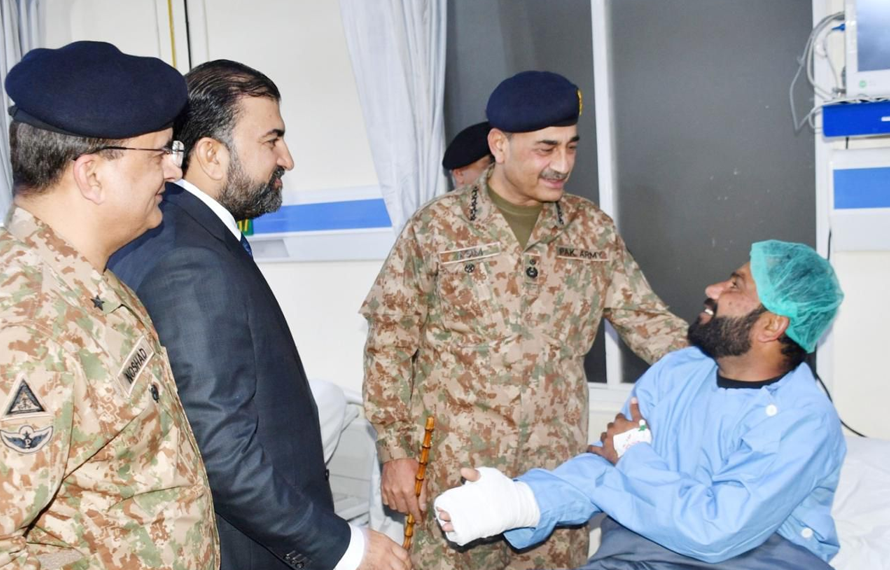 بعد ازاں فیلڈ مارشل سید عاصم منیر نے وزیر اعلیٰ بلوچستان کے ہمراہ کمبائنڈ ملٹری ہسپتال (سی ایم ایچ) کوئٹہ کا دورہ کیا، جہاں انہوں نے پاک فوج، ایف سی بلوچستان اور پولیس کے زخمی اہلکاروں سے ملاقات کی۔ آرمی چیف نے زخمی جوانوں کے بلند حوصلے کو سراہا اور وطن کے دفاع میں ان کی بہادری اور استقامت کو خراجِ تحسین پیش کیا۔