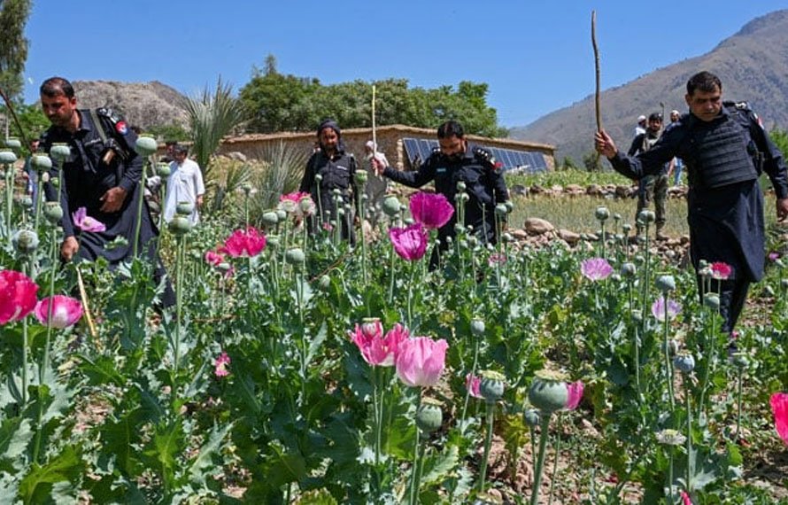 پشاور : خیبر پختونخوا میں منشیات کے خلاف حکومت کے زیرو ٹالرنس عزم کے تحت محکمہ ایکسائز و ٹیکسیشن اور نارکوٹکس کنٹرول نے ضلع مہمند اور صوابی میں بڑے پیمانے پر پوست کی غیر قانونی فصل تلف کر دی۔