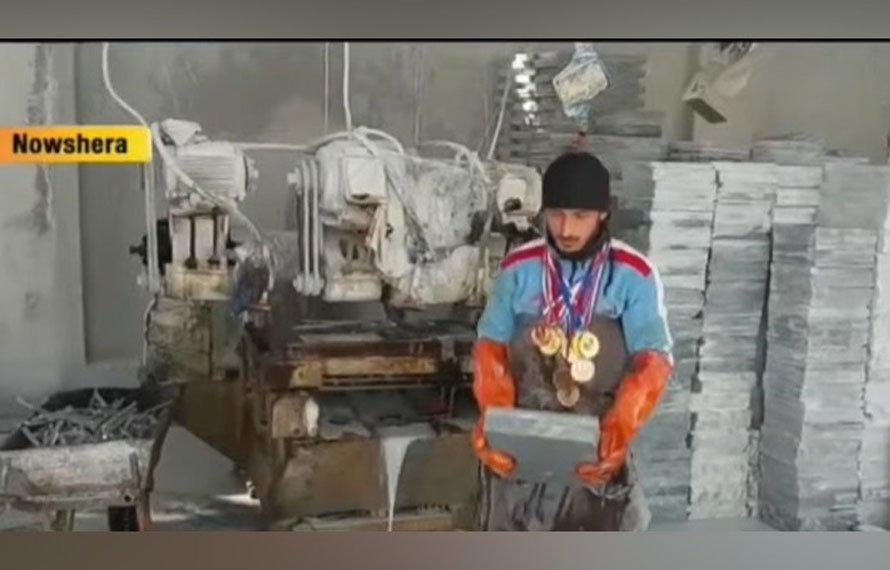 نوشہرہ: مارشل آرٹ اور جمناسٹک میں متعدد میڈلز جیتنے والے قومی کھلاڑی رضوان پٹھان آج معاشی مشکلات کے باعث نوشہرہ کی ایک ماربل فیکٹری میں مزدوری کرنے پر مجبور ہیں۔