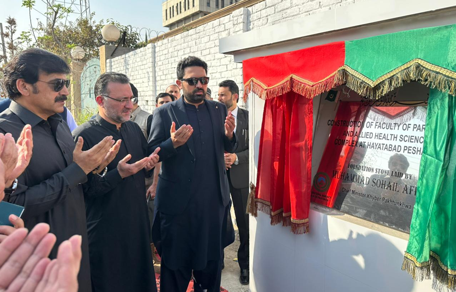 وزیراعلیٰ خیبر پختونخوا محمد سہیل آفریدی نے حیات آباد فیز فائیو میں فیکلٹی آف پیرا میڈیکل اینڈ الائیڈ ہیلتھ سائنسز کے کثیر المنزلہ کمپلیکس کا باقاعدہ سنگِ بنیاد رکھ دیا ہے۔