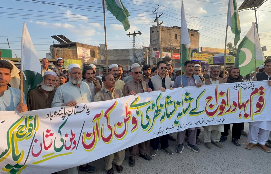 ریلی سے خطاب کرتے ہوئے اے سی شجاعت علی خان، سینئر صحافی طارق مغل، اسرار احمد اورکزئی، بازار صدر کے ظفر اقبال، ملک سیدا خان اور دیگر مقررین نے کہا کہ افواج پاکستان کے خلاف زہریلا پروپیگنڈا کرنے والوں کو منہ کی کھانا پڑے گی،
