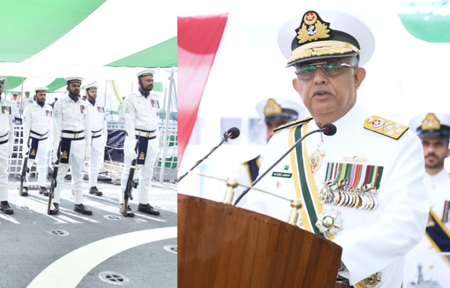 تقریب سے خطاب کرتے ہوئے نیول چیف نے اس بات پر روشنی ڈالی کہ اہم بحری تجارتی اور توانائی کی گزرگاہوں پر پاکستان کے تزویراتی محلِ وقوع کا تقاضا ہے کہ قومی مفادات کے تحفظ اور بحری تجارتی راستوں کو محفوظ بنانے کے لیے ایک طاقتور بحری قوت موجود ہو۔