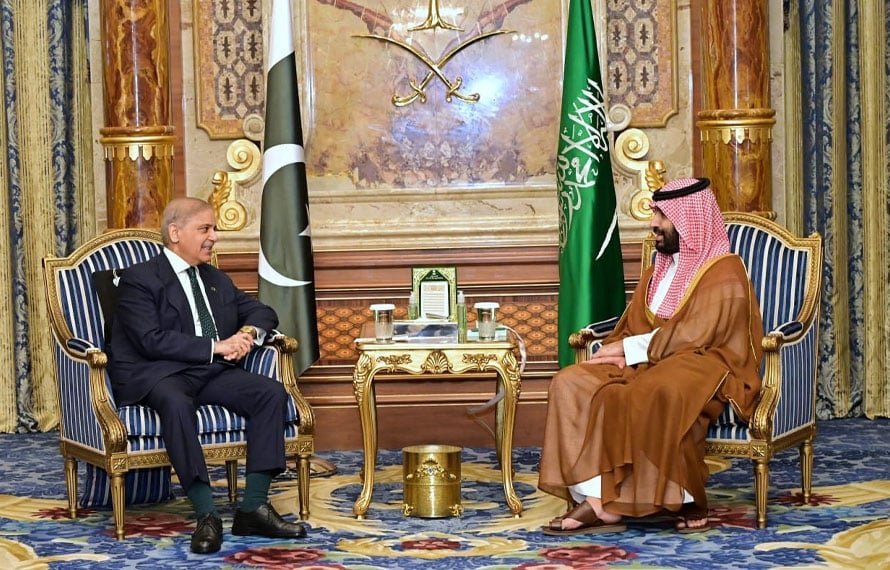 وزیراعظم شہباز شریف قصر اسلام پہنچے تو سعودی ولی عہد محمد بن سلمان نے ان کا پرتپاک استقبال کیا۔ دونوں رہنماؤں نے اس موقع پر دو طرفہ تعلقات، خطے کی تازہ ترین صورتحال اور باہمی تعاون کے مختلف پہلوؤں پر تفصیلی تبادلہ خیال کیا۔