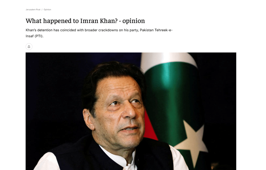 اسرائیل کے معروف اخبار یروشلم پوسٹ میں انتہا پسند یہودی لکھاری مائیکل جینکلوز کا بانی پی ٹی آئی عمران خان کے حق میں مضمون اس ناپاک گٹھ جوڑ کو عیاں کرنے کے لیے کافی ہے جس کا مقصد پاکستان کی عالمی ساکھ کو نقصان پہنچانا اور ملکی اداروں کو دباؤ میں لانا ہے۔