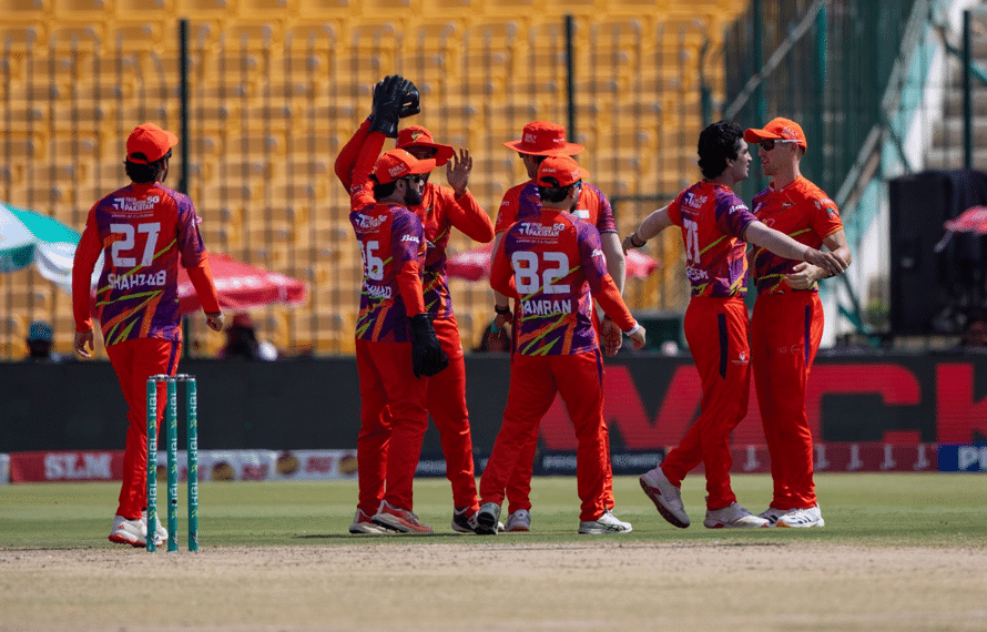 کپتان شاداب خان آج مکمل طور پر آؤٹ آف فارم نظر آئے اور 30 گیندوں پر صرف 12 رنز بنا سکے جبکہ مارک چیپمین 23 رنز بنا کر آصف آفریدی کا شکار بنے۔